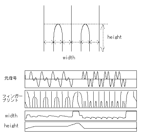 フィンガープリントをそのままファジィ推論することは困難なので、ここではフィンガープリントの基底部の孤と孤の間隔、孤の頂点の高さ(σの値)の2つ要素を入力とし、各コード毎のフィンガープリントパターンの持つ要素の固有値をメンバーシップ関数とし表わしている。