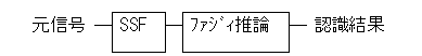 本研究は、マルチスケール記述を利用したスケールスペースフィルタリング(以下SSFと略す) を特徴抽出に用い、ファジィ推論をその抽出された特徴の認識に用いた処理系を提案し検討する。その信号認識のプロセスを図1に示す。