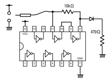 RS-FFの前に「何もしないFF」の動作を考えます。 図のようにバッファ回路を正帰還させると、 「何もしないFF」ができます。 図のようにインバータで組み立ててみます。 このFFの入力に無理やり Low、High を入力すると、 その状態が記憶されます。 ※flip-flop は英語で「パタパタ」「カタカタ」といった音を表す擬音語らしい。